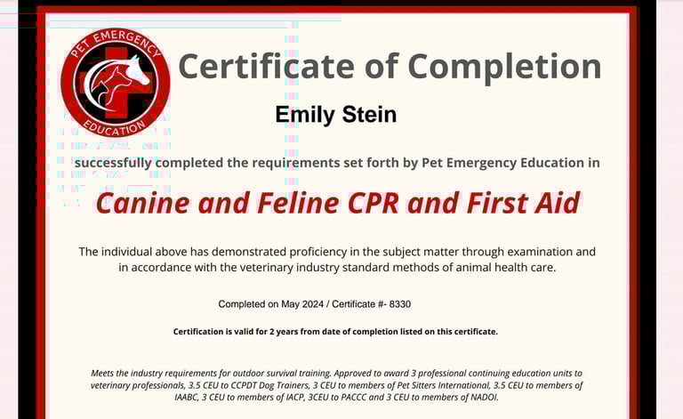 We come directly to you for all your pet care needs, including drop‑in visits, walks, overnight care, in‑home grooming, and nail trims. I am certified in Pet CPR & First Aid, fully insured, a certified groomer, and a dedicated pet nutrition enthusiast.