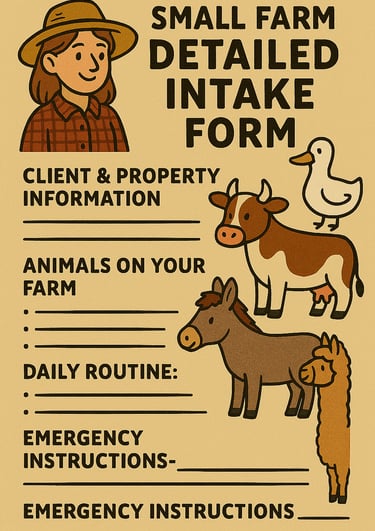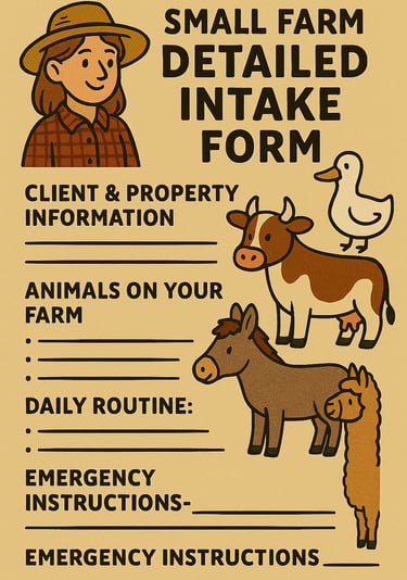 Complete the Farm sitting request form, Schedule a meet and greet, and Detailed intake form