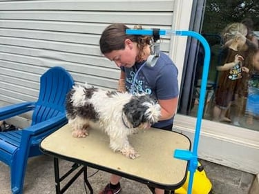 Oddly enough after going to school for cosmetology and earning my license in hair design. I had found a passion for grooming dogs. While exploring my options for dog grooming schools, I was offered a job at Petsmart in New Jersey. Before accepting the job I found out that they send you to grooming school. That answered my prayers. I started out as a bather, until you qualify and are selected to go to grooming school. Then off to grooming school I went, signing a 2 year commitment contract after graduating from grooming school. We were the number one salon in the country 3 years in a row hitting 1 million alone just in the shop. I groomed for a vets office, for a few different mom and pop shops. I love helping animals and contributing to making them feel good. I will say that grooming at the pets home makes a world of difference. Less stress on the pet, not having to worry if they are dog aggressive, not having to put them in a cage while they wait to be picked up from their owner. I faced many challenges working in a shop. From sharing a table and tub to figuring out how to groom dogs that don't like to be touched and are dog aggressive when your only a few feet away from another groomers table. Offering a one-on-one grooming service is the best thing I could have done for my grooming career.