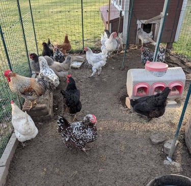 Customized chicken care based on flock size and visit frequency. Rates are per visit and include feeding, watering, and egg collection. (Travel fee applied based on location)